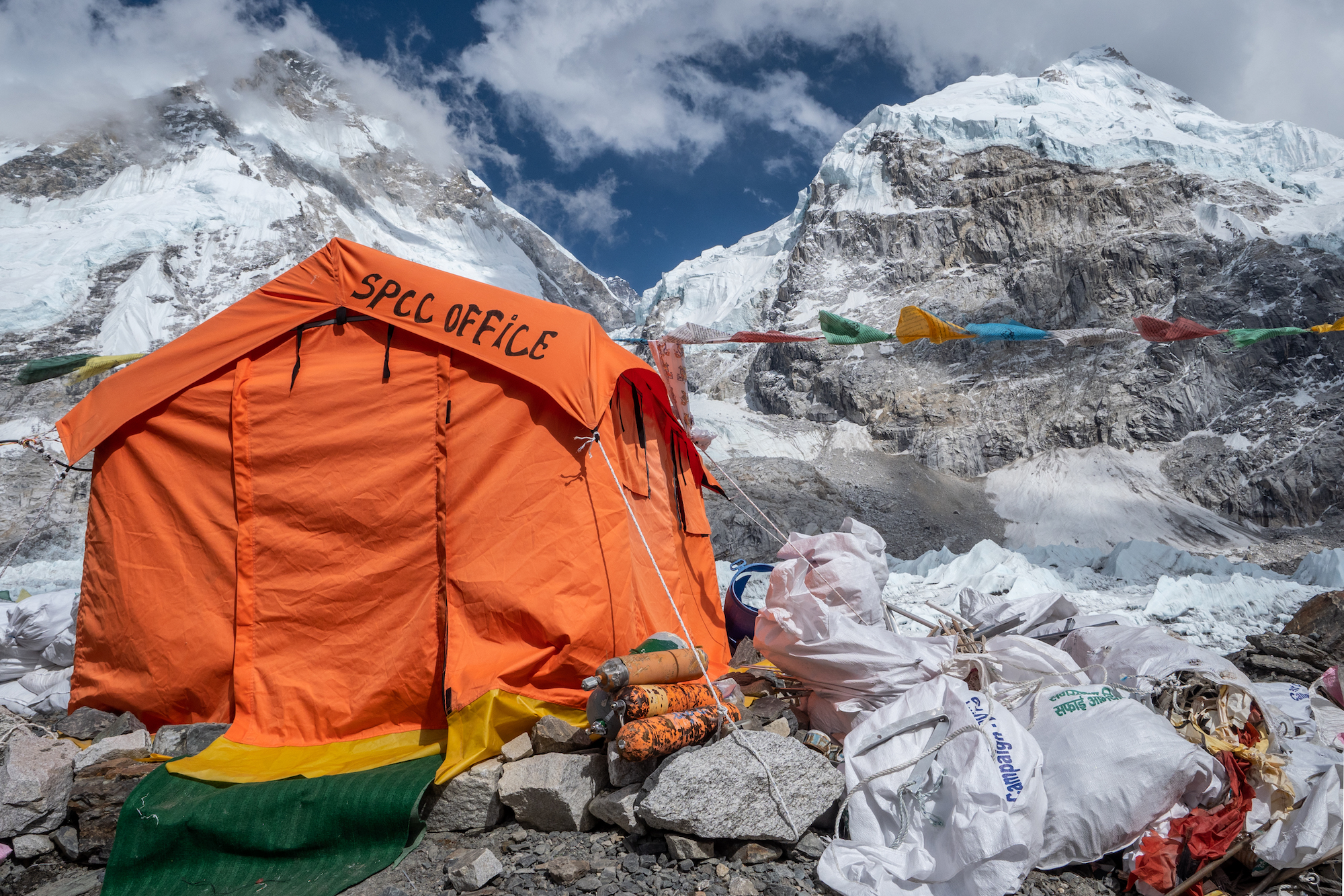 SPCC działa od 1991 roku, od dwunastu lat na jej czele w EBC stoi Tshering Tenzing Sherpa, właściwy człowiek na właściwym miejscu. Od dwunastu lat każdy sezon spędza pod Everestem, pilnując tutaj porządku. Zjawia się na początku marca, znika z końcem maja, gdy w bazie nikogo już nie ma.