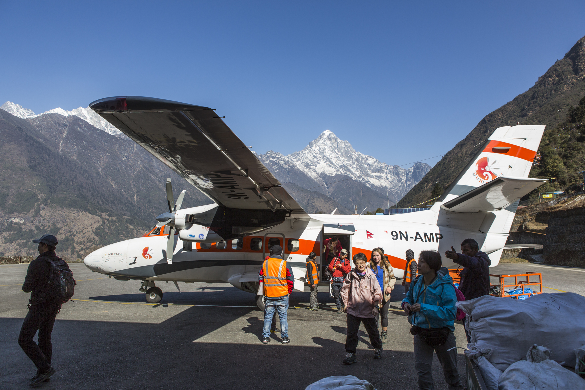 O lotnisku w Lukli dużo się mówi, a głównie mówi się, że to najniebezpieczniejsze lotnisko na świecie. Bo pas startowy jest krótki i kończy się przepaścią, natomiast w przypadku lądowania, kończy się skałą, w związku z tym wznosi się w górę, bo tak łatwiej wyhamować. Poza tym do Lukli leci się maciupeńkim samolotem, wydmuszką, w której mieści się dosłownie kilka osób. Rozumiem, że dla kogoś, kto boi się latać, może być to ciężkie przeżycie, ale jakoś mnie to nie rusza. (Helikopter okazał się dużo straszniejszy).